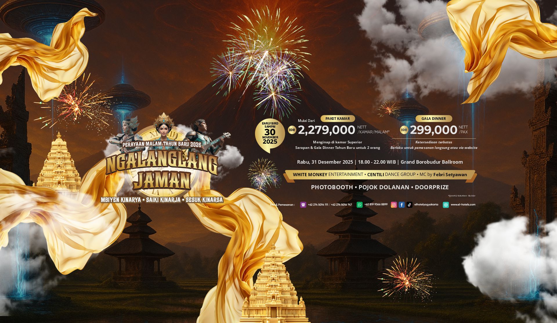 Tidak hanya menyediakan kamar-kamar yang nyaman dengan berbagai pilihan untuk dipilih, kami juga memberikan yang terbaik untuk menyelenggarakan pengalaman pertemuan kelas atas di Yogyakarta. Untuk memenuhi kebutuhan para tamu pertemuan kami, kami memiliki lebih dari 12 ruang pertemuan yang dapat melayani mulai dari 3 orang hingga lebih dari 500 orang, khususnya di Grand Borobudur Ballroom yang memiliki luas 455.9 meter persegi.